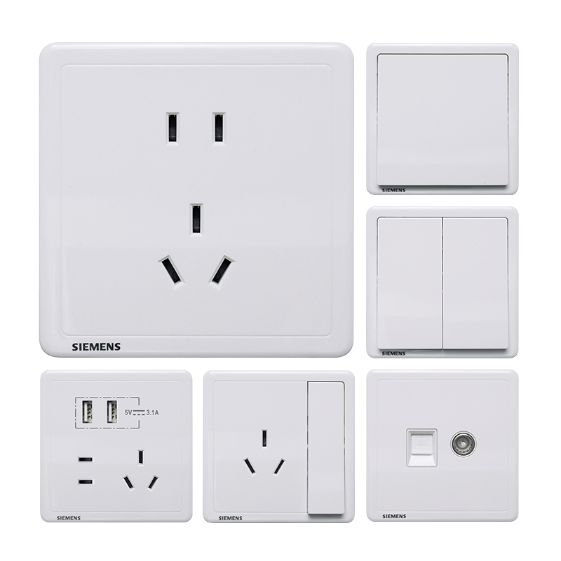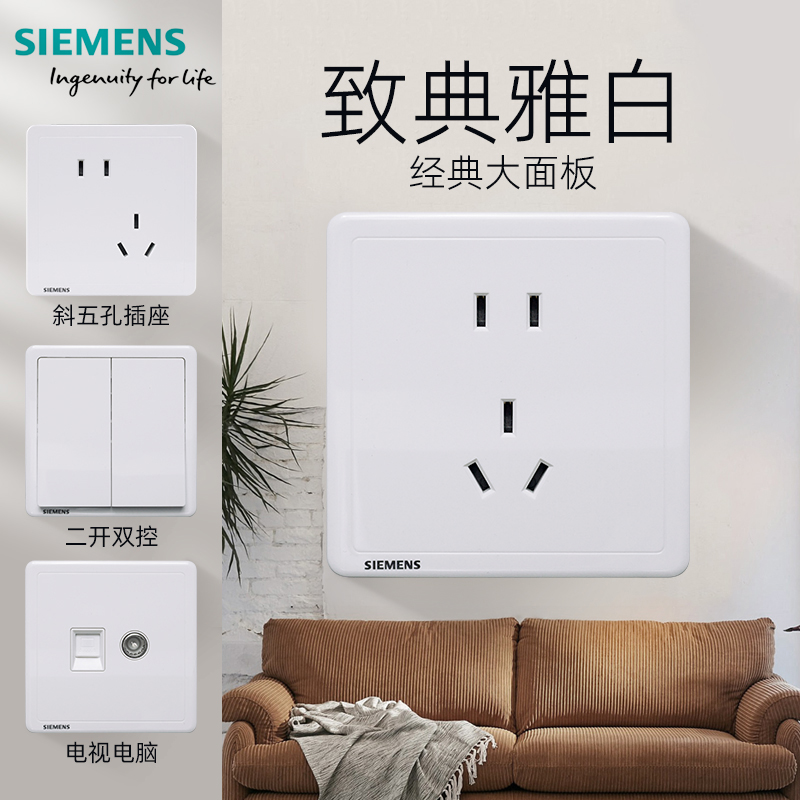 正品西门子致典雅白开关插座板五孔usb一开双控16a空调家用奶油风