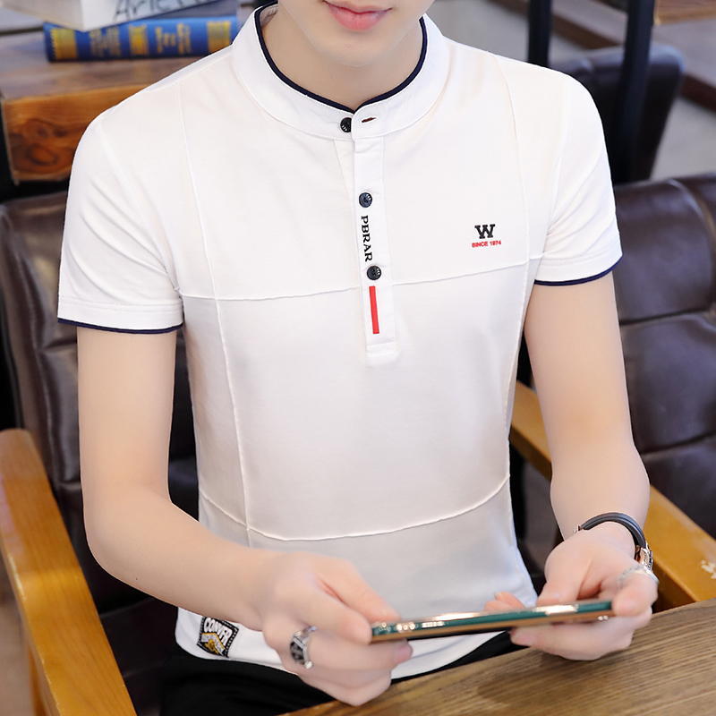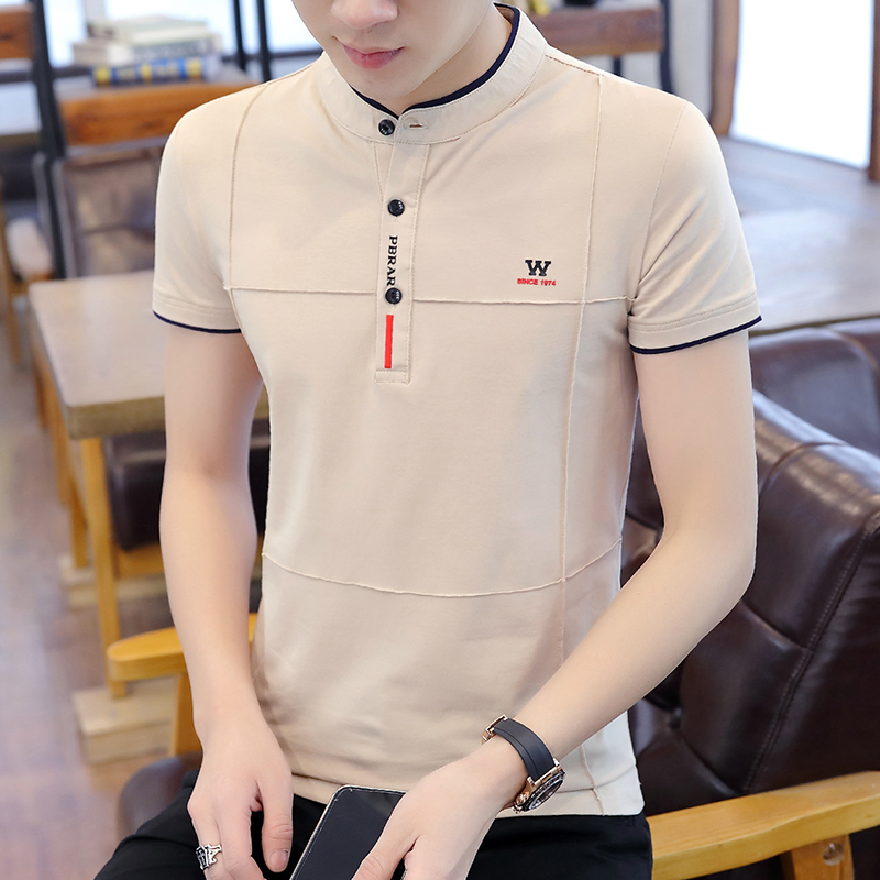 小立领polo衫男夏季商务休闲有带领短袖T恤修身复古男装上衣服薄T