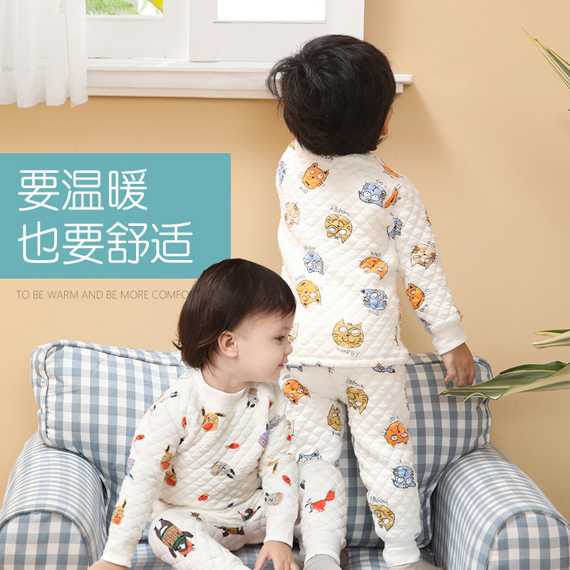 儿童三层保暖夹棉内衣套装婴幼儿秋衣秋裤宝宝婴儿衣加绒加厚秋冬