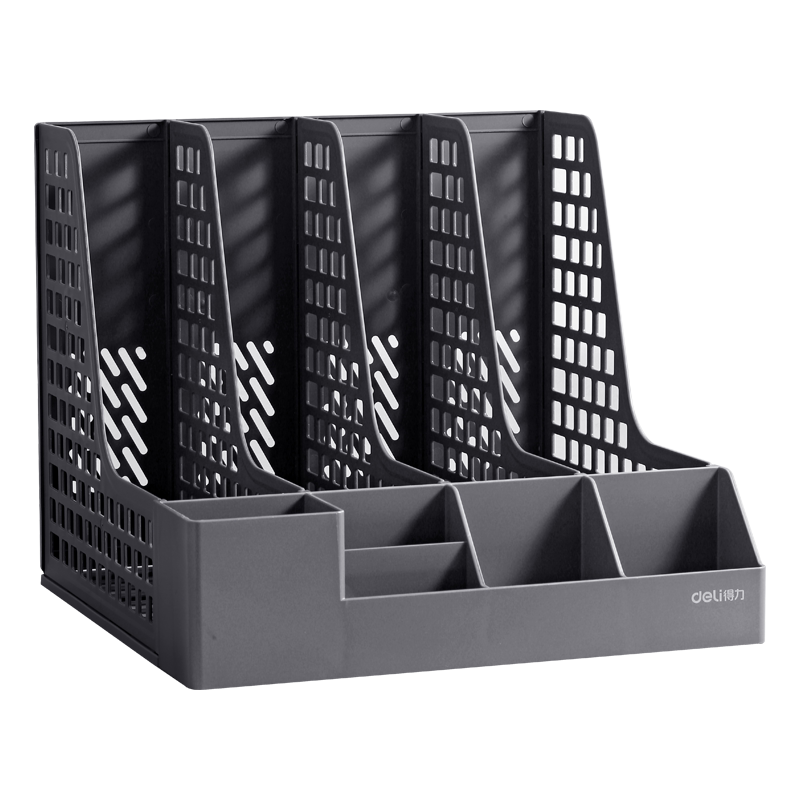 得力加厚文件框文件架文件收纳盒塑料书架黑色简易立式书立书架桌面办公用品大全文件夹架筐文件盒桌上资料架