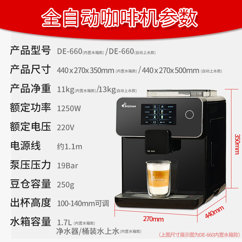 【政府补贴15%】德颐660升级真彩屏全自动咖啡机家用商用美式意式