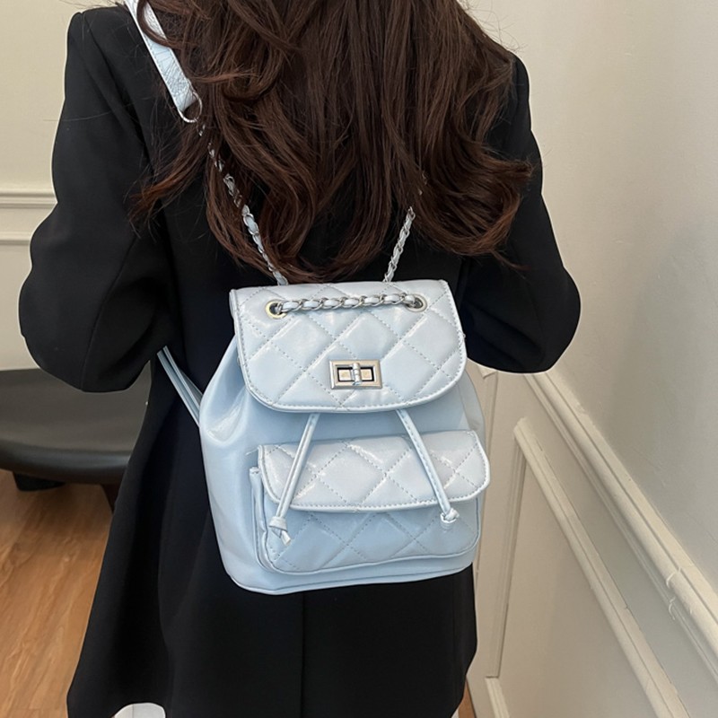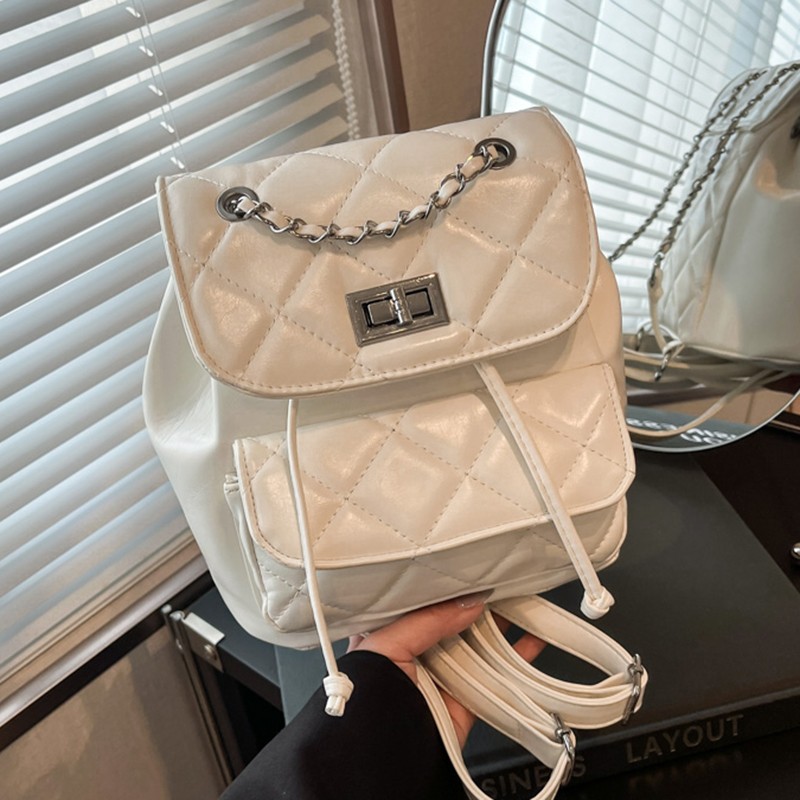 小香风菱格双肩包2025韩国新款春夏小众时尚链条包简约百搭单肩包