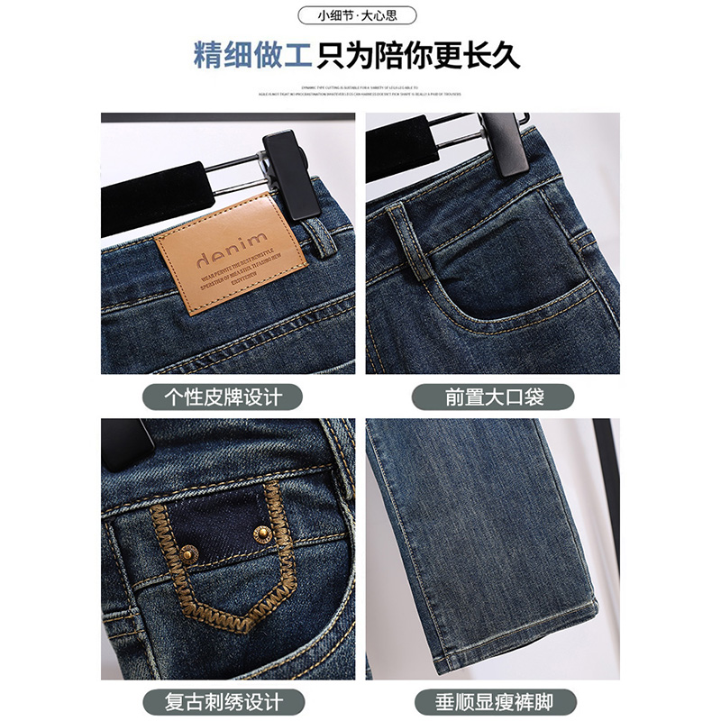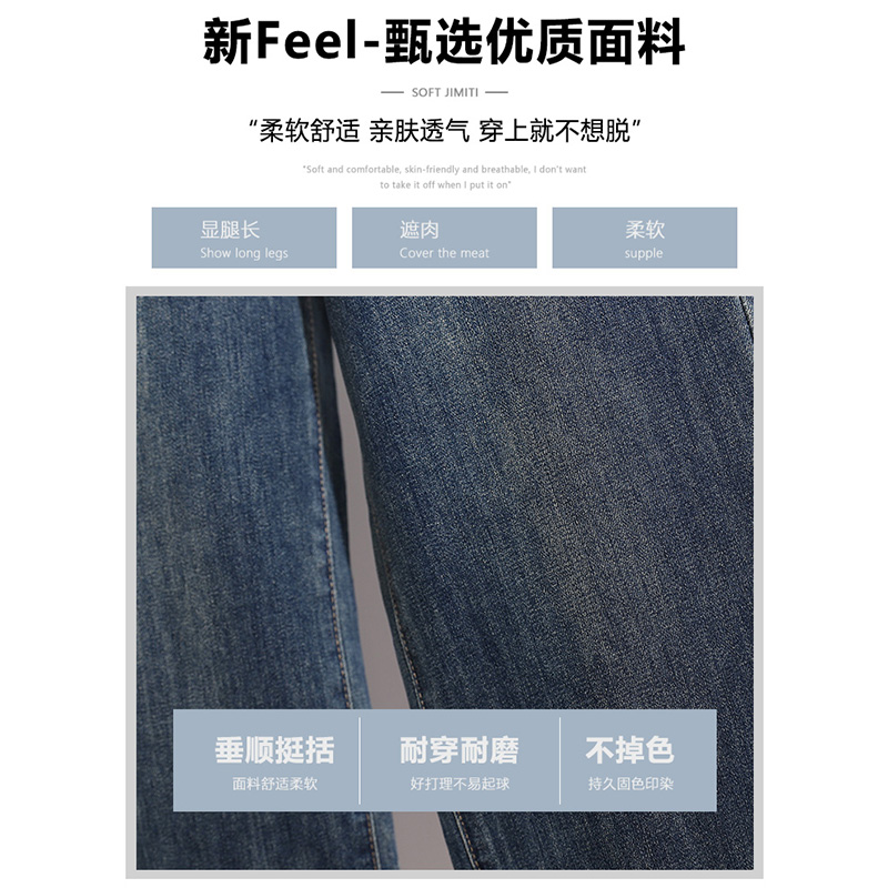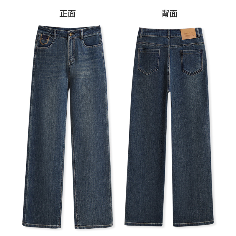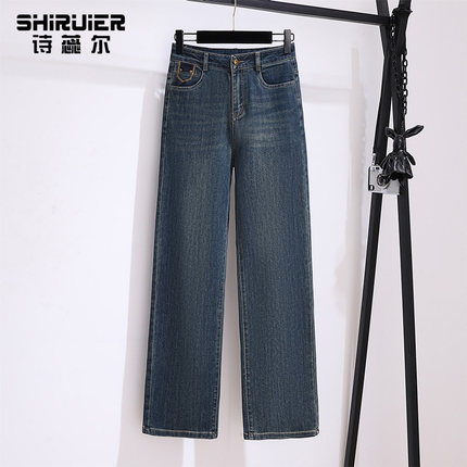 高端孔雀蓝直筒牛仔裤女早春秋季2025新款窄版宽松显瘦阔腿九分裤