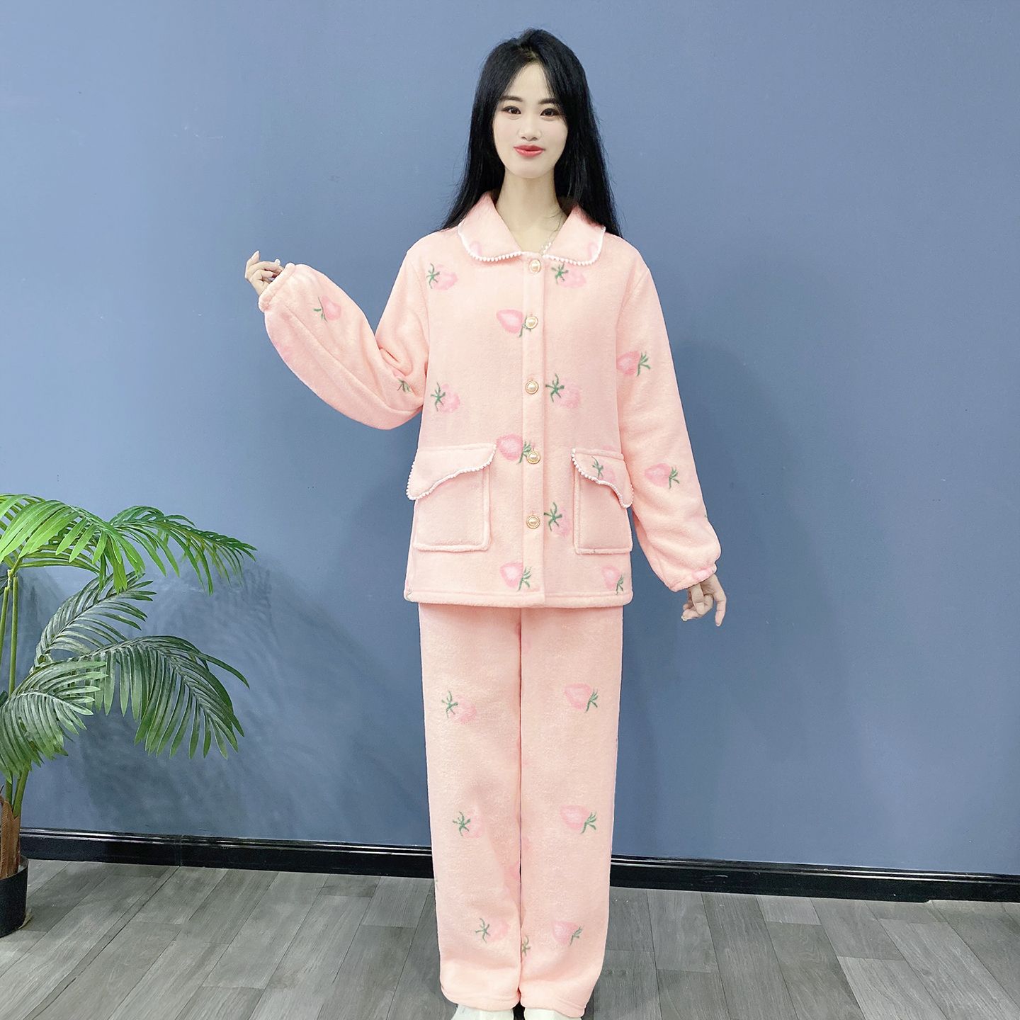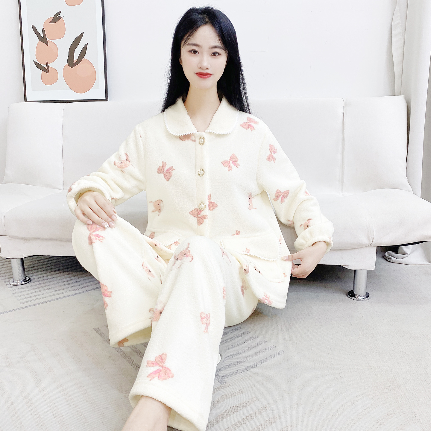 奶fufu秋冬季加厚睡衣女款珊瑚绒可爱保暖可外穿法兰绒居家服套装