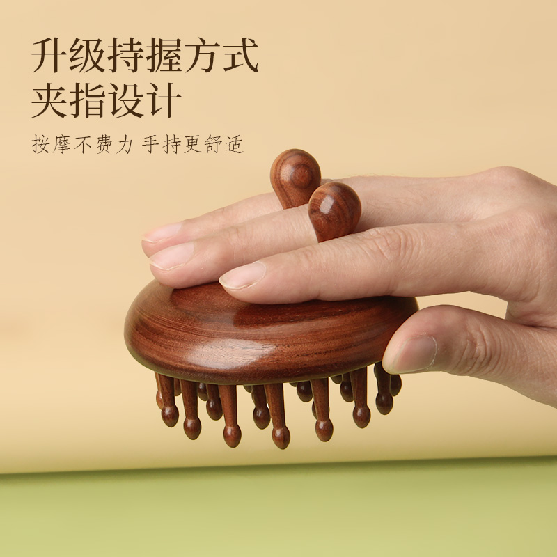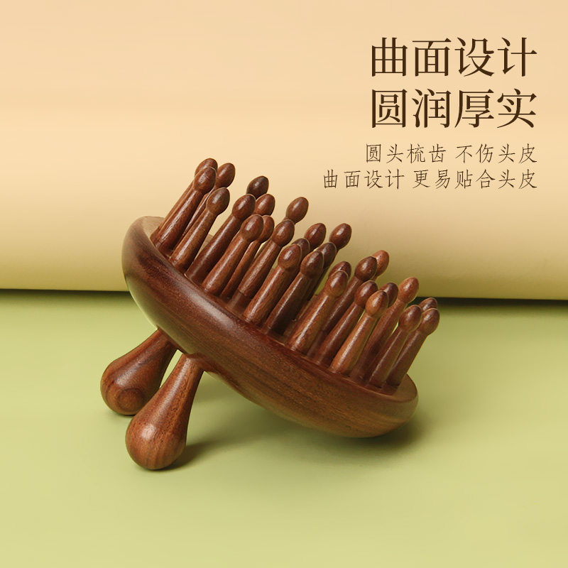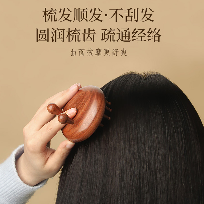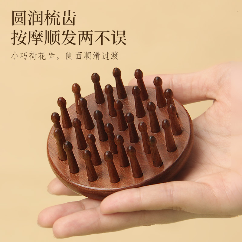 高端檀木圆盘洗头梳头皮按摩梳头部经络疏通神器头疗养发木梳子
