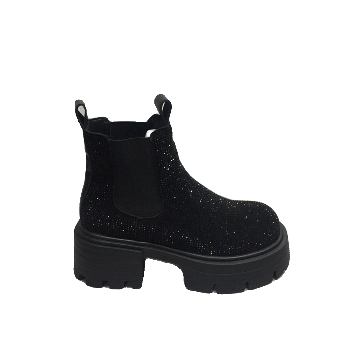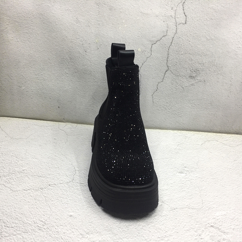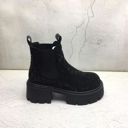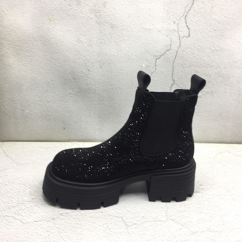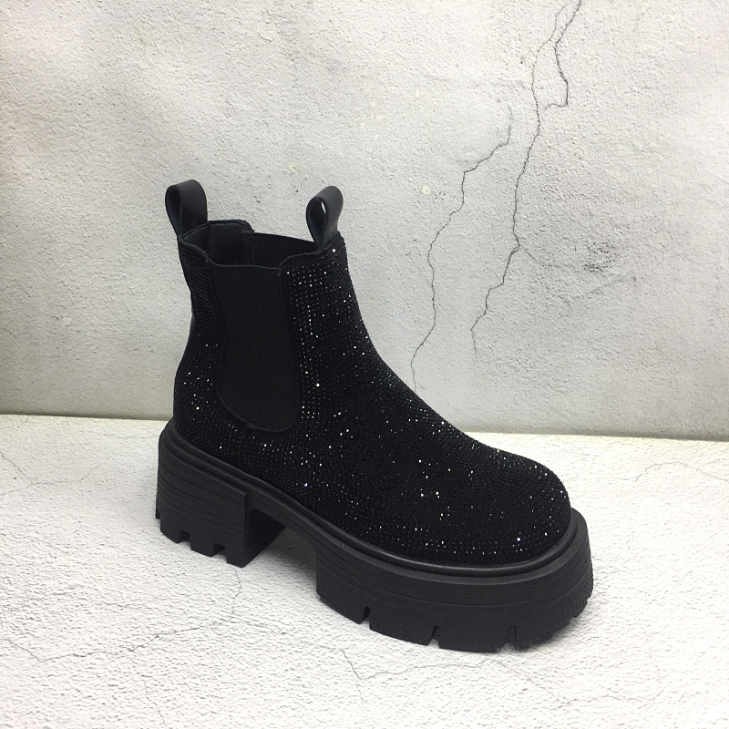 品牌撤柜2023冬季新款断码处理女鞋潮流高跟厚底水钻松紧口马丁靴
