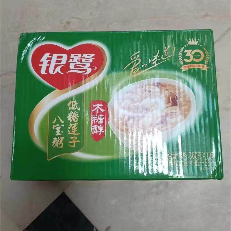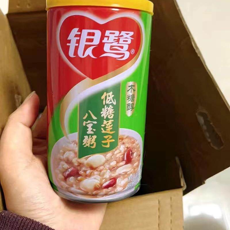 新货银鹭低糖莲子八宝粥木糖醇代餐营养八宝粥360gx12罐整箱