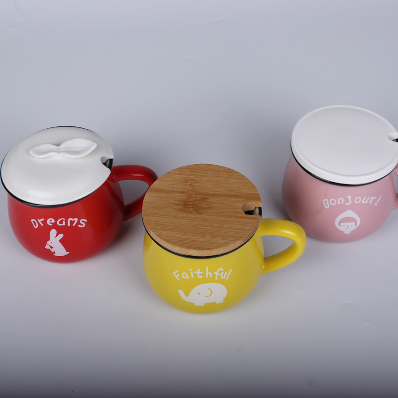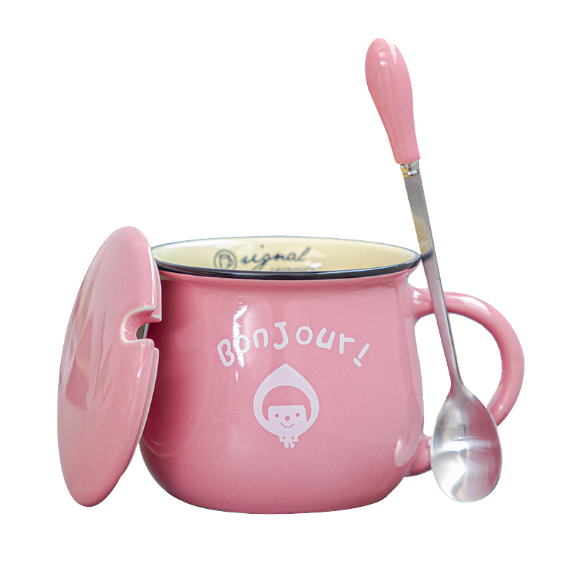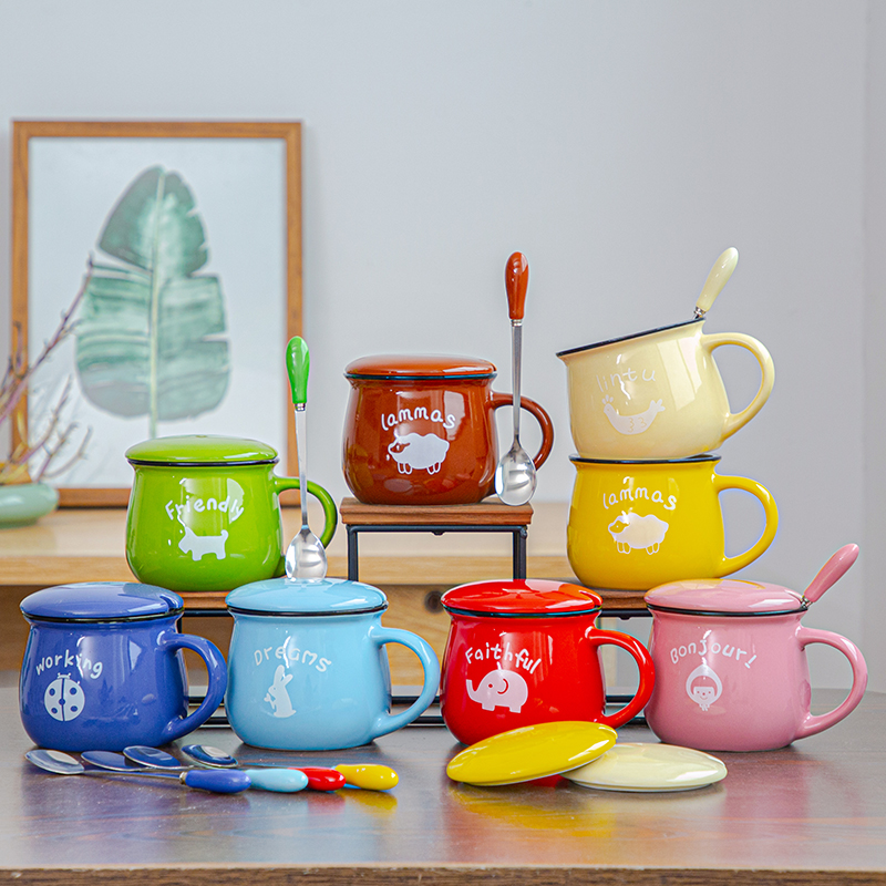 早餐奶杯彩色咖啡马克杯简约大肚陶瓷喝水杯子带盖勺logo定制刻字