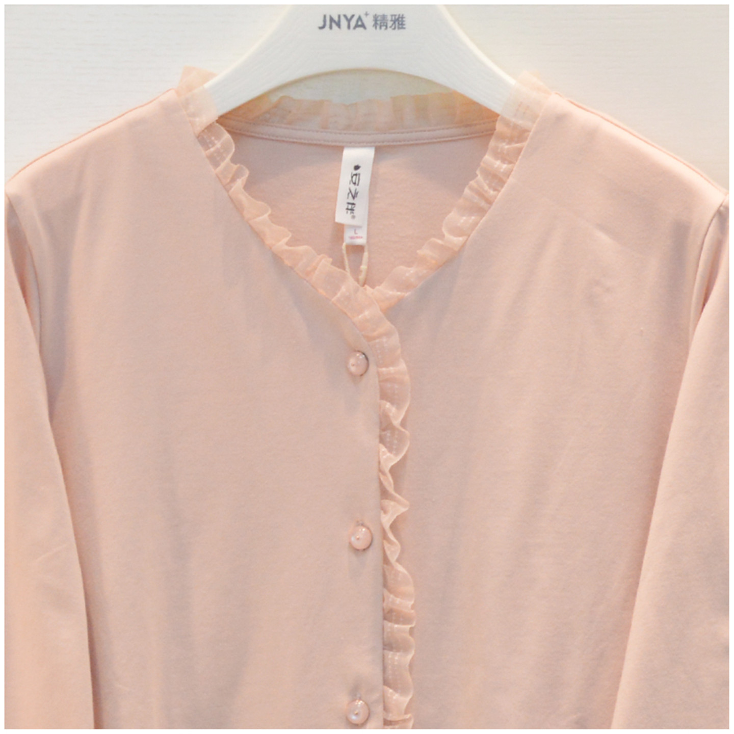安之伴甜美少女睡衣春秋季新品针织暖芯棉V领开衫长袖纯棉家居服