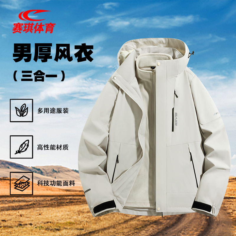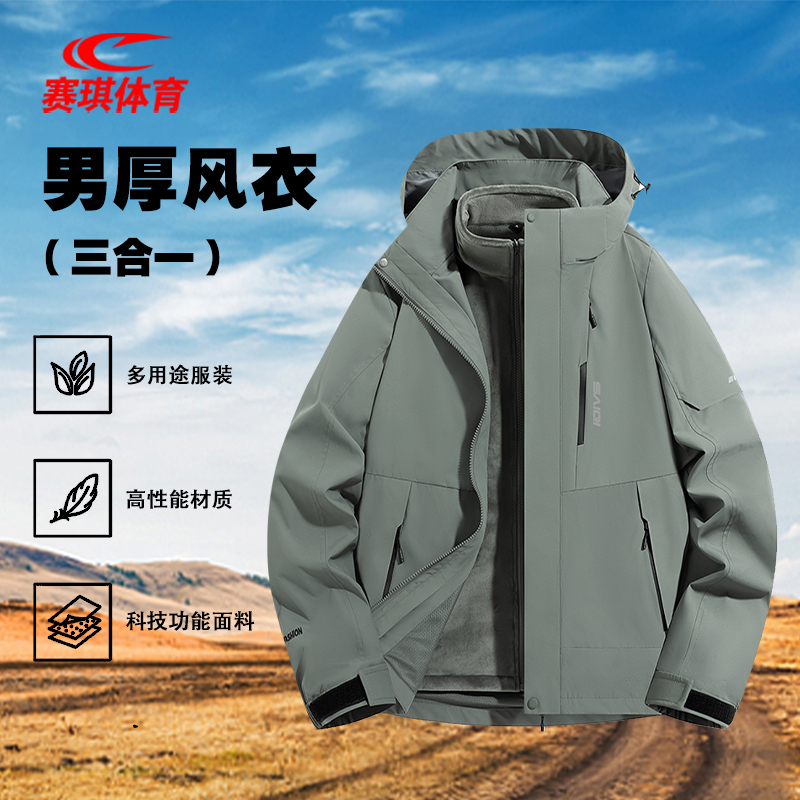 赛琪加厚内胆三合一可拆卸风衣夹克男防风保暖户外登山滑雪服外套