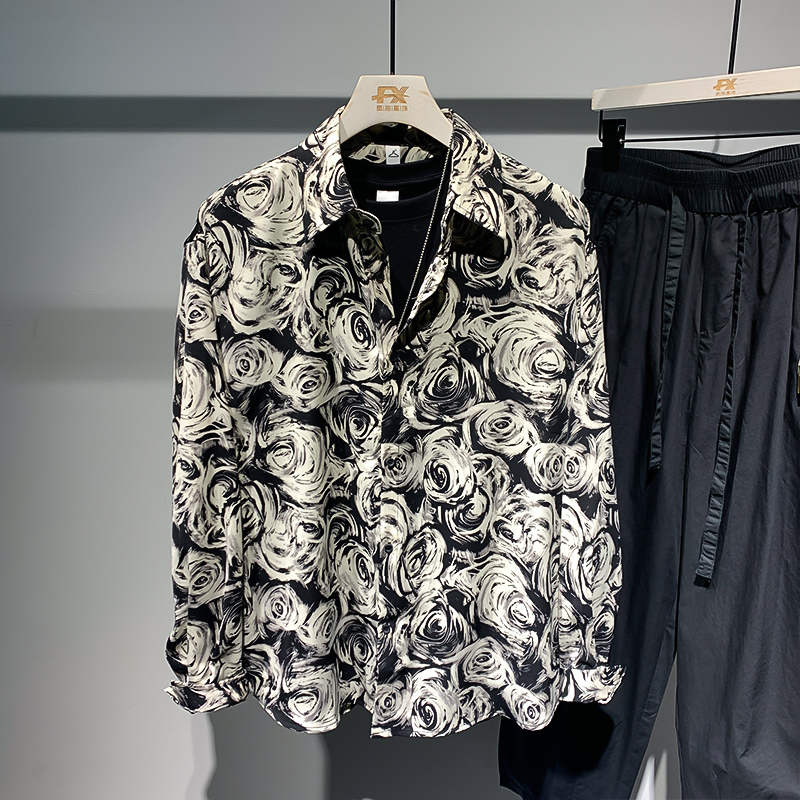 长袖花衬衫男士春秋新款