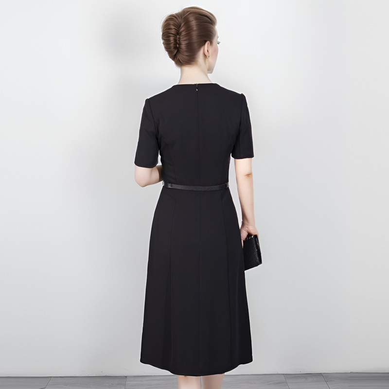 璐丝百丽裙子女夏季圆领A字裙短袖职业连衣裙高级感气质2025新款