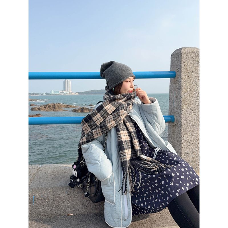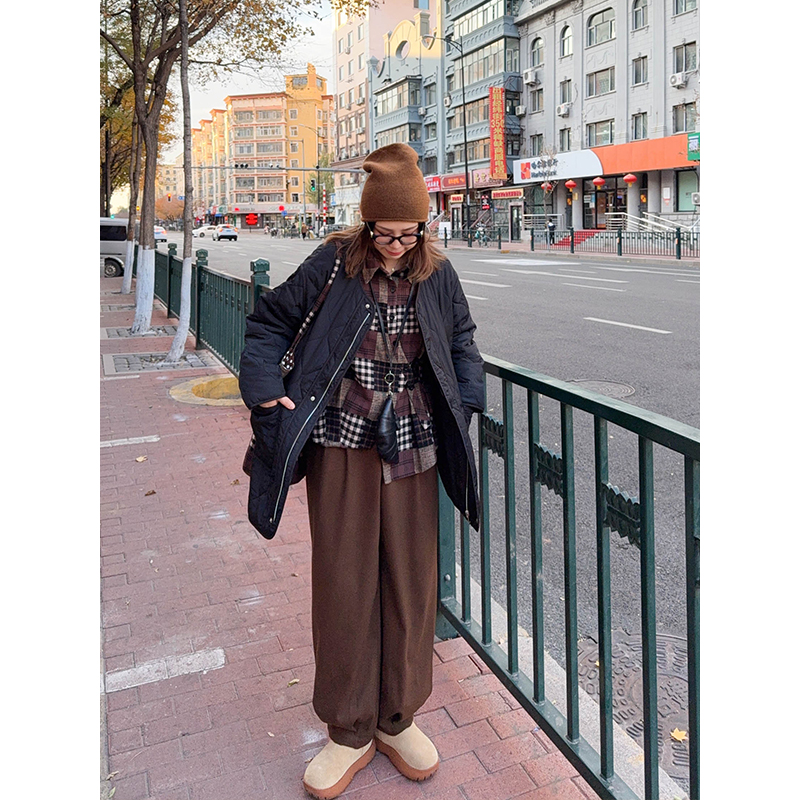 vogana戛纳家大码原创韩系休闲極简轻量感保暖宽松菱格棉服厚外套