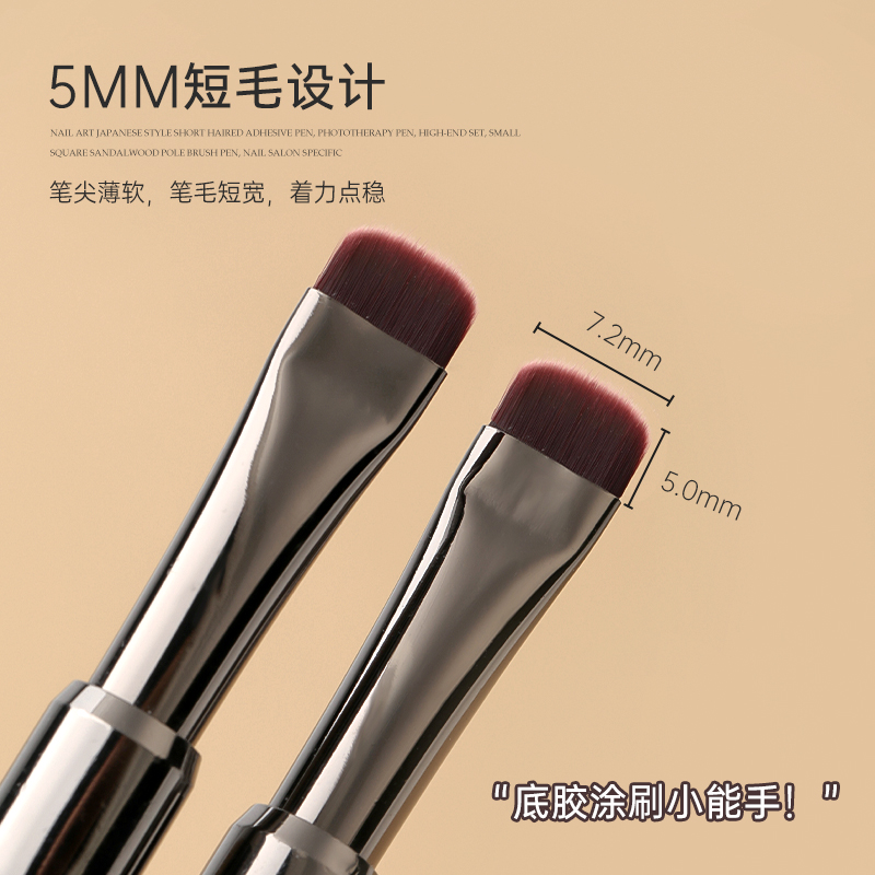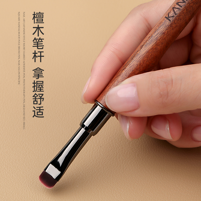 底胶笔刷日式专业短毛小方圆光疗笔高档檀木涂刷笔美甲店专用工具