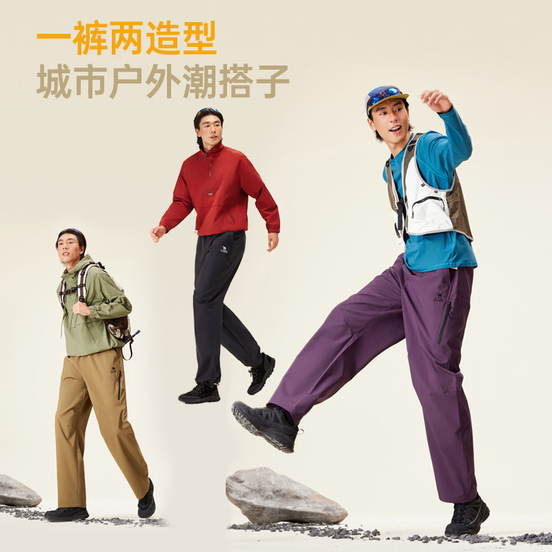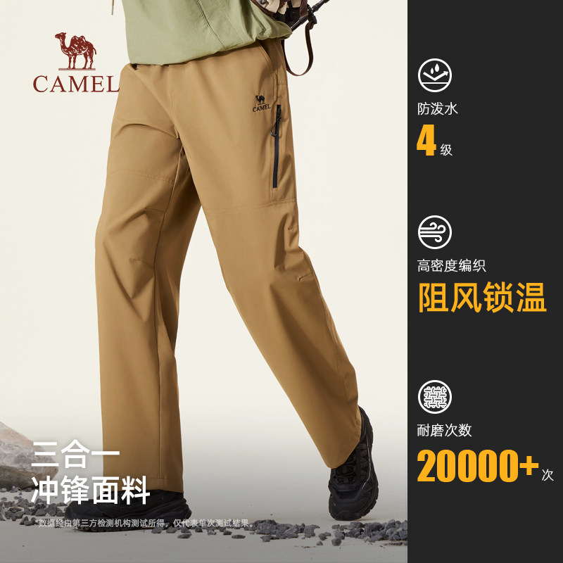骆驼男装休闲裤男款秋冬季新款2025户外防泼水宽松休闲冲锋长裤男
