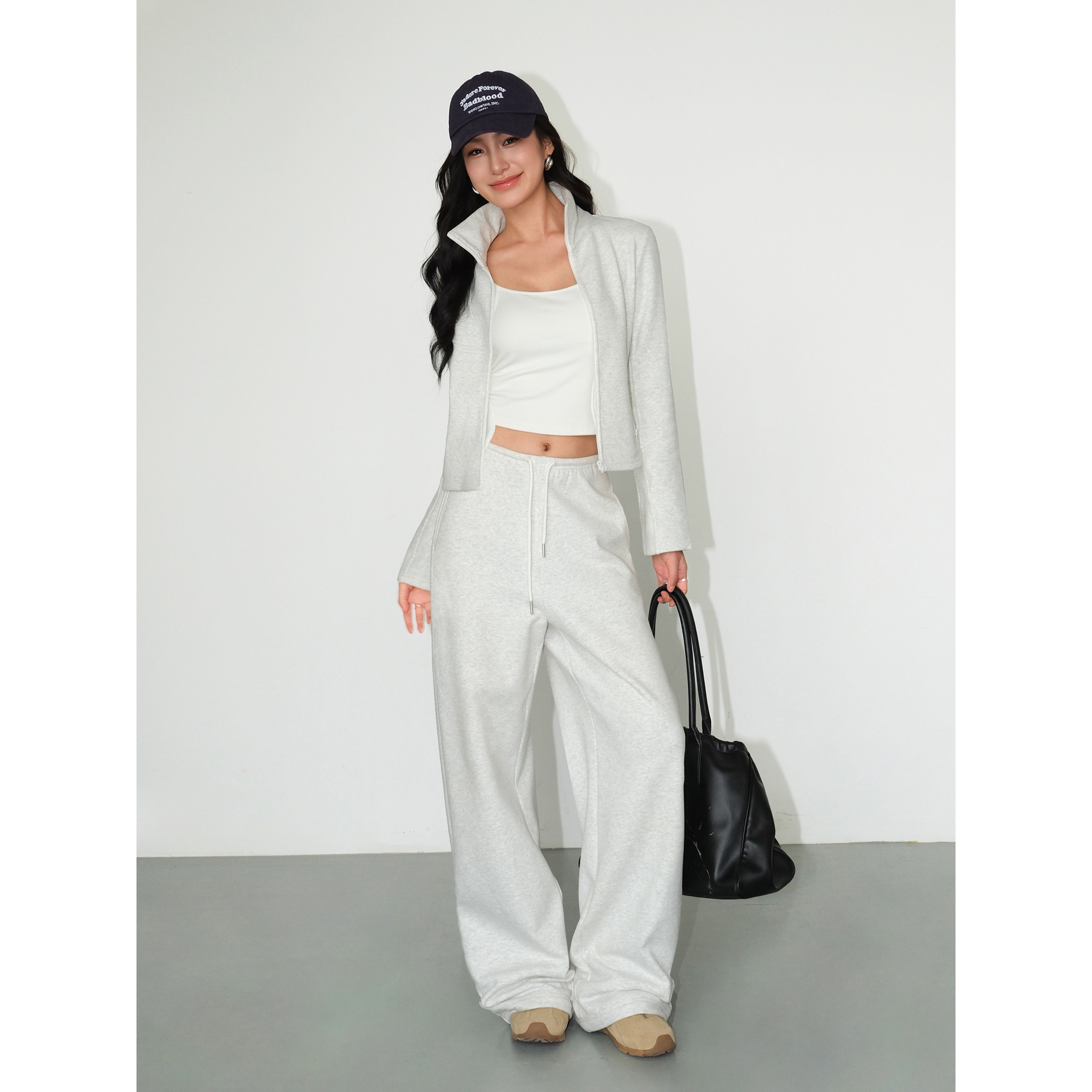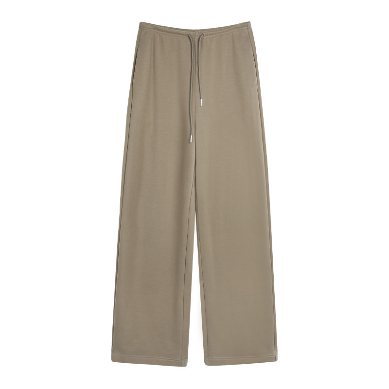 NEVA HU灰色休闲加绒卫裤阔腿裤女松紧腰抽绳裤子宽松拖地长裤