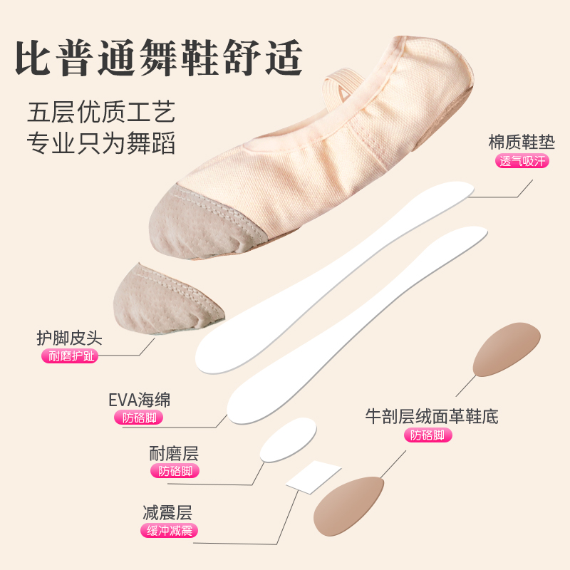 优可豆舞蹈鞋儿童跳舞专用形体鞋