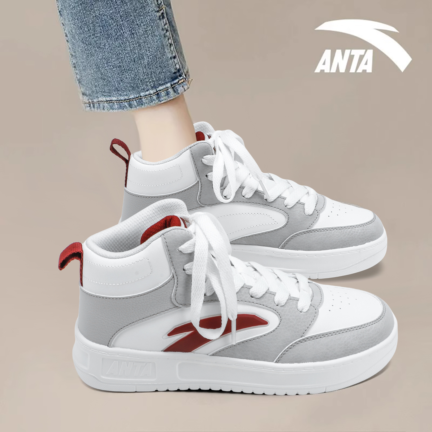 安踏女鞋官方正品高帮板鞋女2025秋季新款厚底增高潮流休闲运动鞋
