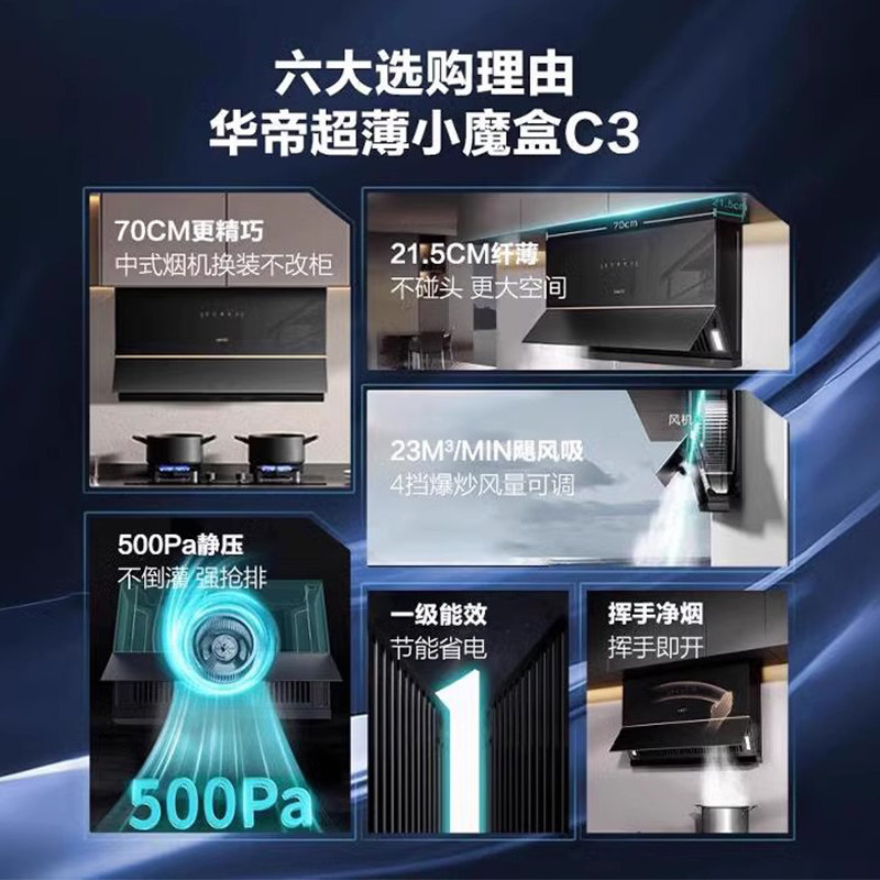 [超薄小魔盒]华帝C3小尺寸抽油烟机厨房家用大吸力烟机官方旗舰