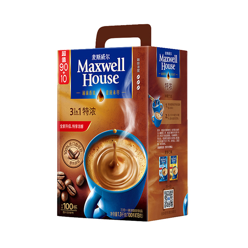 麦斯威尔咖啡经典原味三合一特浓咖啡速溶咖啡100条*13g盒装1300g