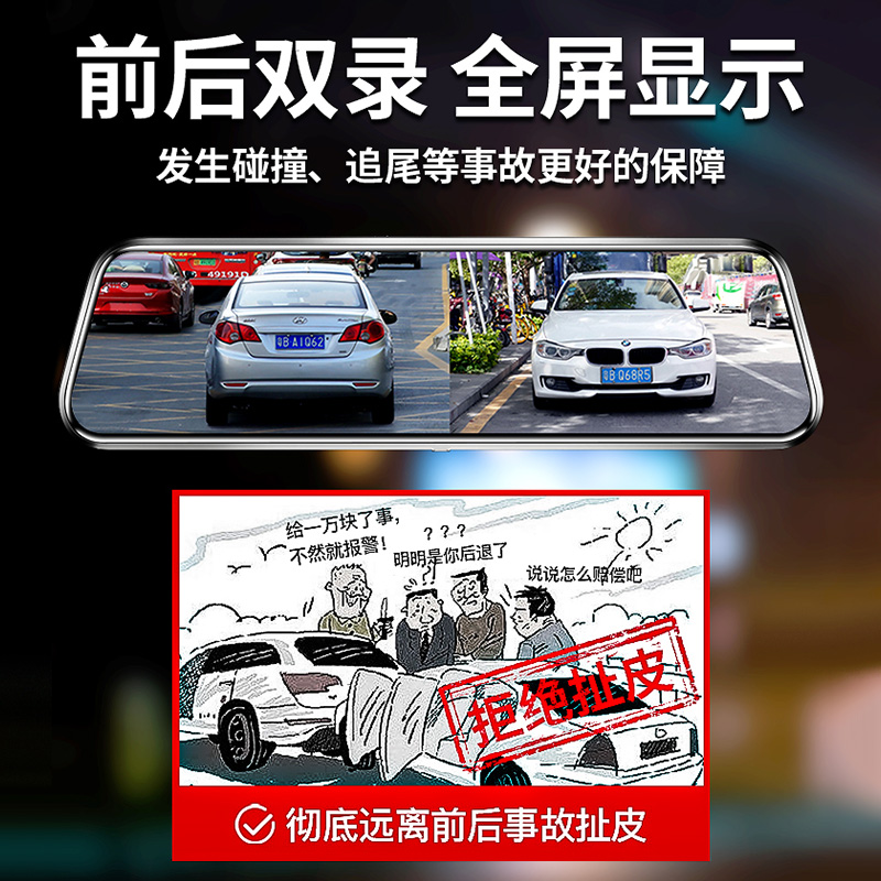 现代全屏流媒体后视镜行车记录仪360全景高清夜视倒车影像免走线