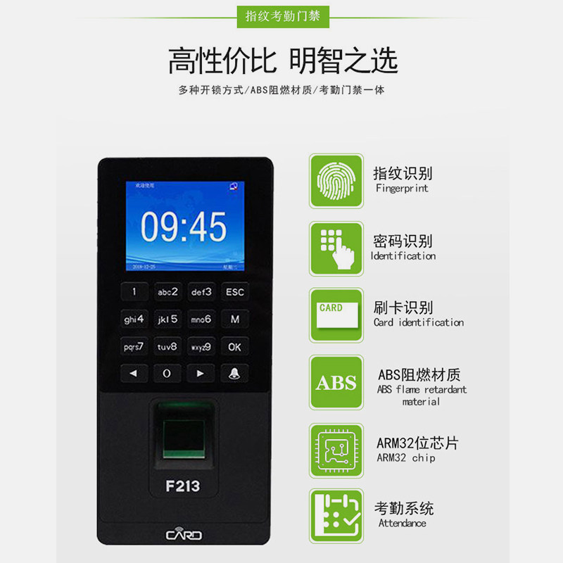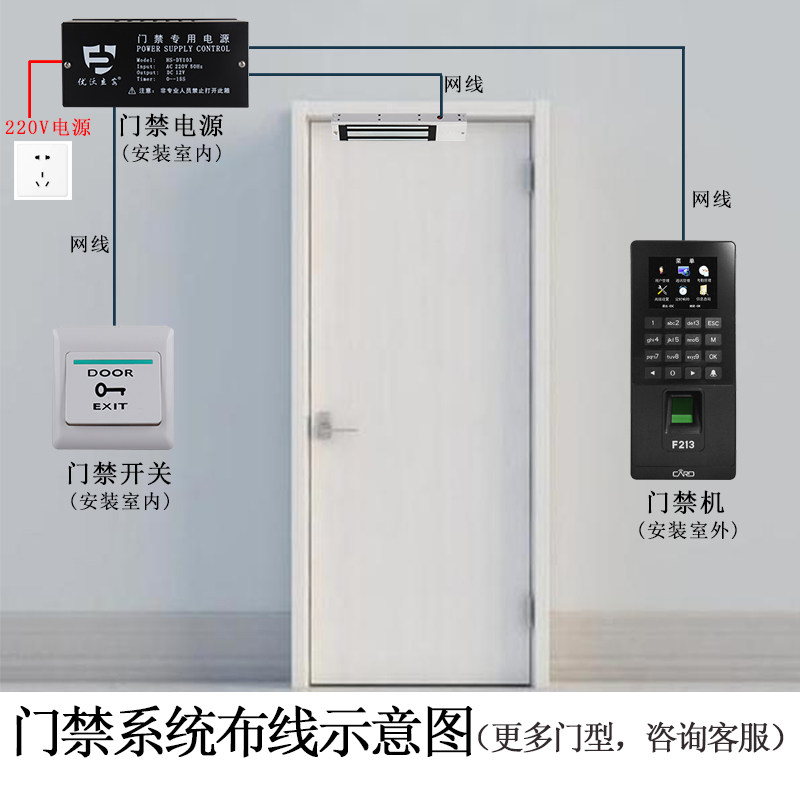 指纹识别刷卡密码考勤门禁一体机铁门玻璃门电磁力锁门禁系统套装