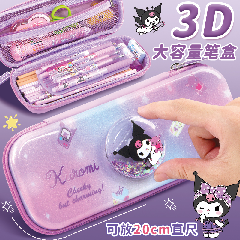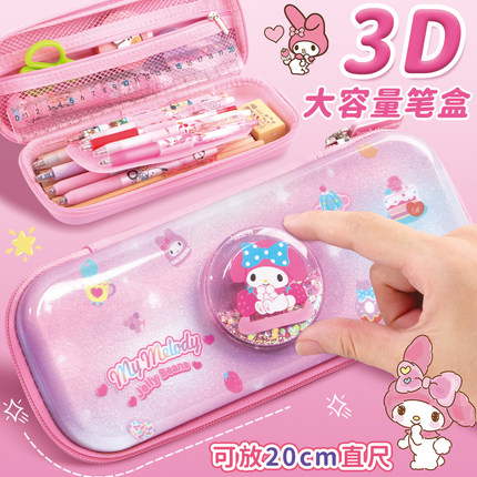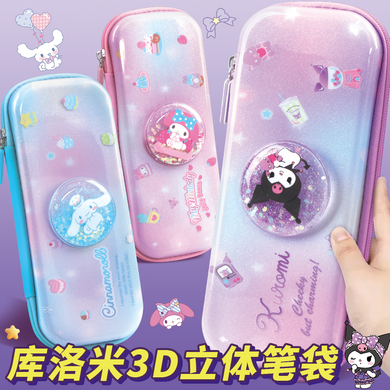 正版三丽鸥笔袋女生2025新款文具盒转盘流沙3D铅笔盒小学生高颜值大容量儿童笔盒初中便携库洛米美乐蒂笔盒