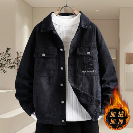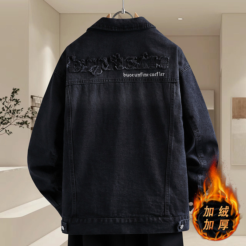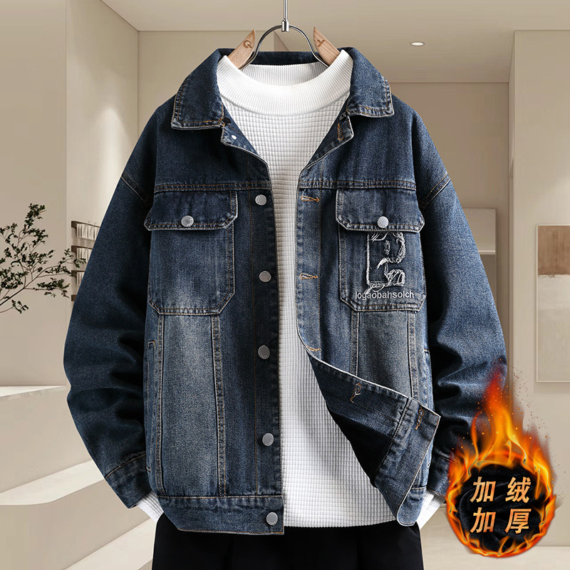 复古刺绣牛仔夹克男青少年秋冬季2025新款高级感痞帅加绒加厚外套
