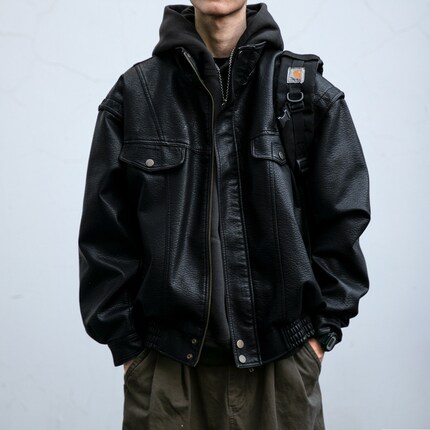 美式复古荔枝纹皮衣外套男春秋新款痞帅机车服短款工装立领夹克潮