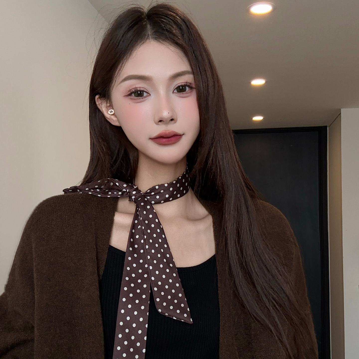 波点长条丝巾女高级感系脖发带搭配衬衫领巾飘带氛围感百搭小围巾