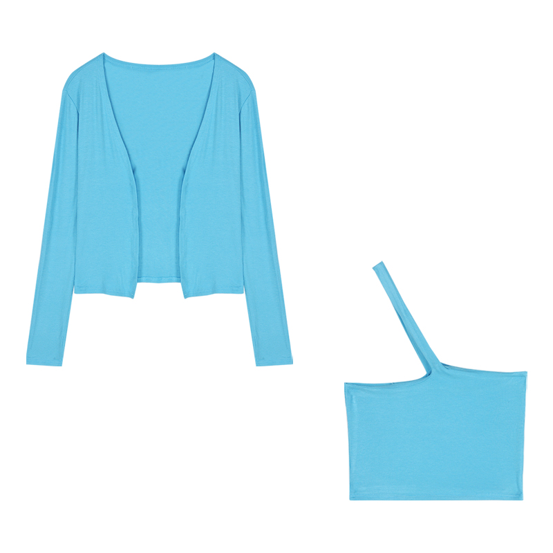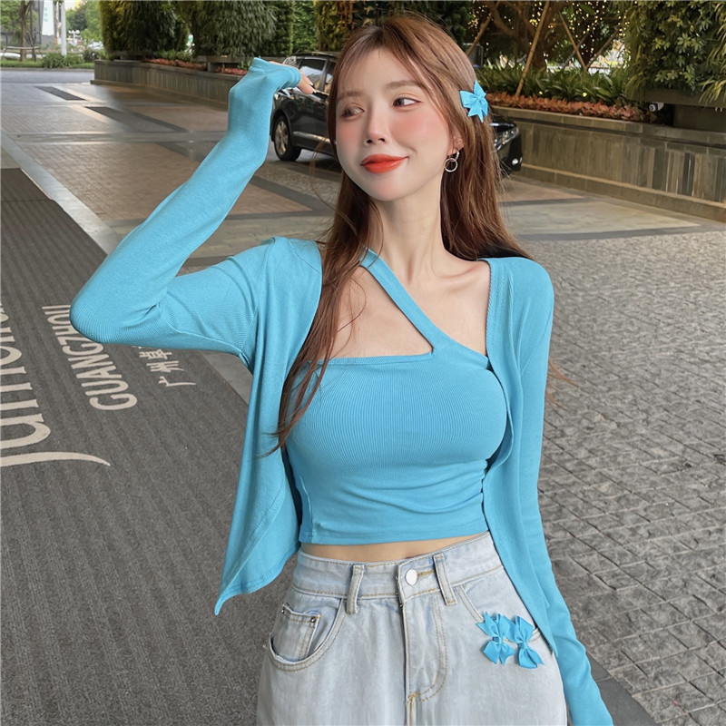 大码胖妹妹针织开衫女披肩外套吊带背心两件套春秋新款打底衫上衣