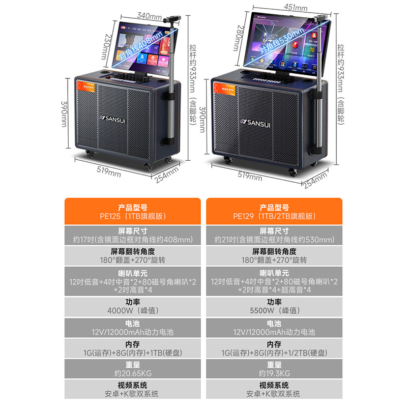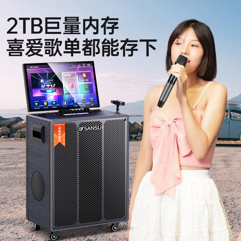 山水PE159广场舞音响户外k歌带显示屏音箱卡拉OK一体机移动ktv