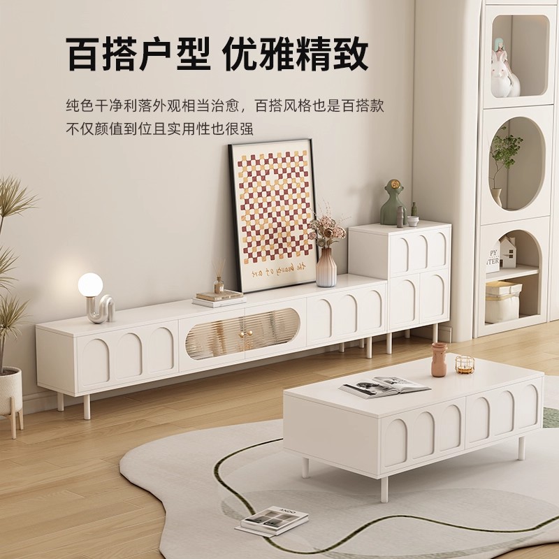 电视柜落地家用客厅小户型茶几组合现代简约法式奶油风储物收纳柜