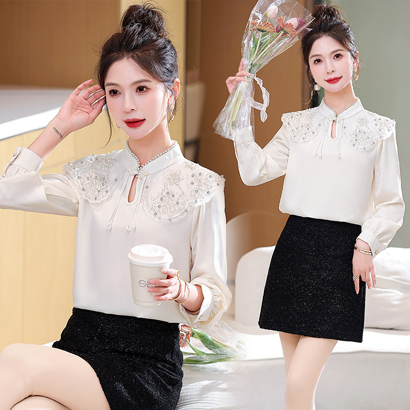 新中式重工钉珠娃娃领衬衫女