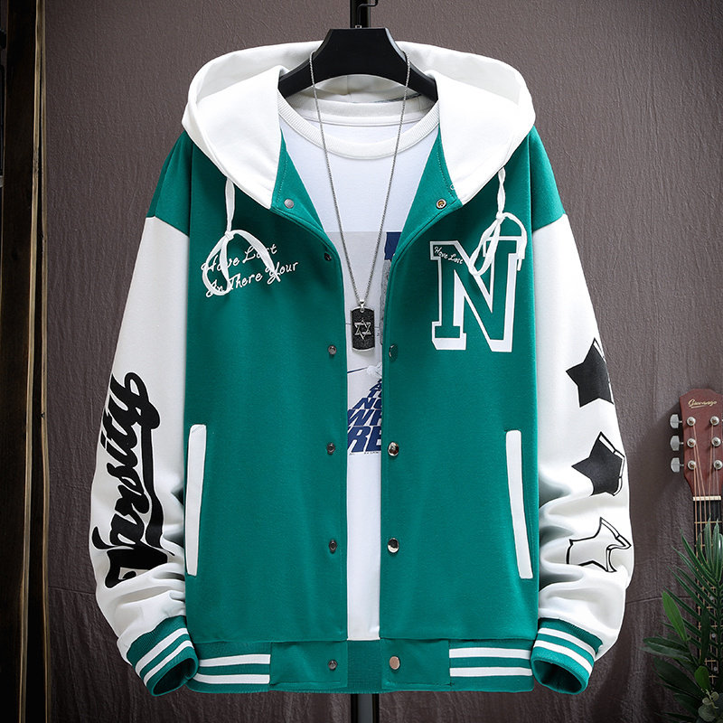 春季13青少年纯棉运动外套男孩14初中学生15岁帅气棒球服夹克套装