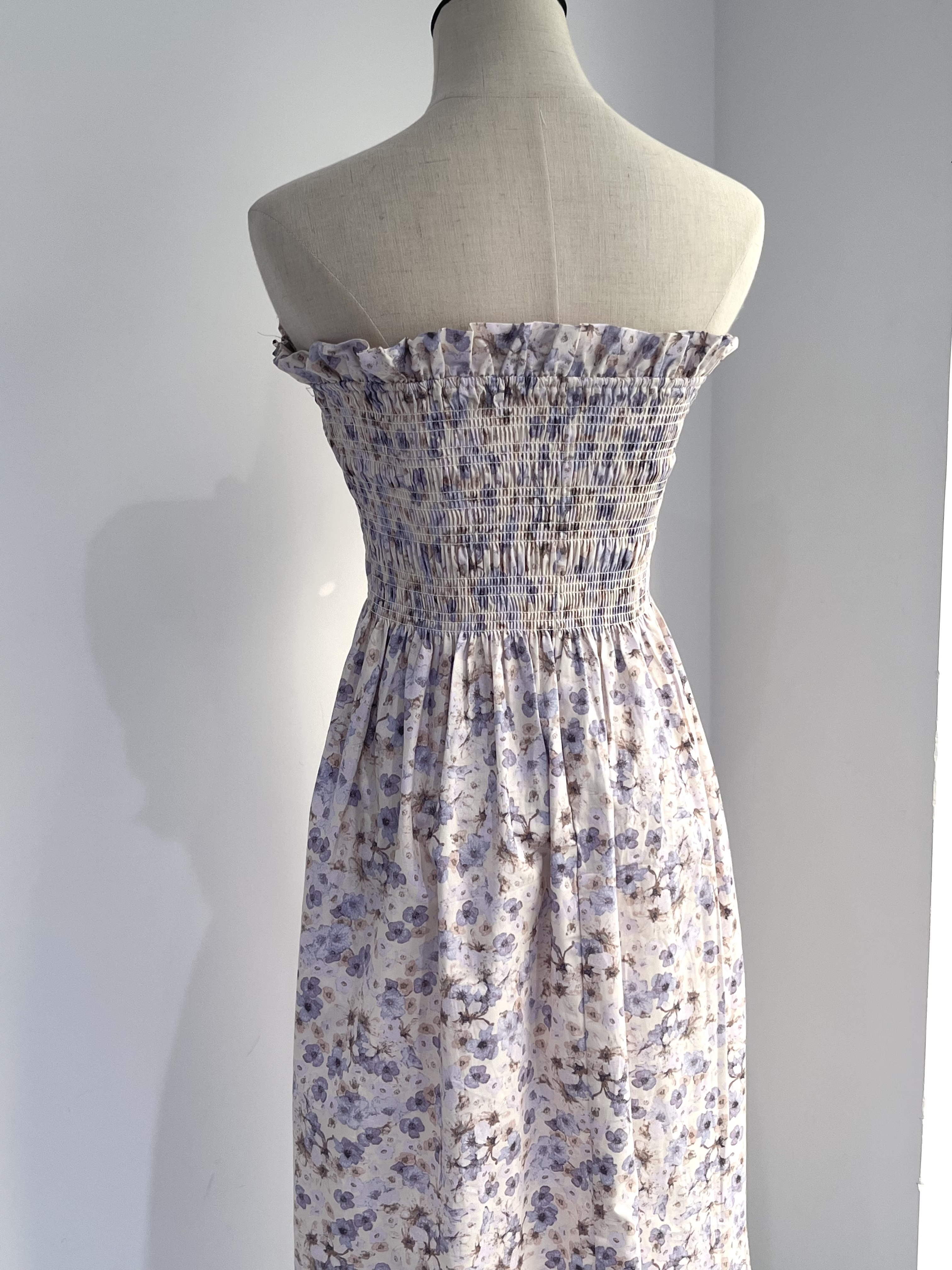 抹胸无袖背心裙女碎花棉麻连衣裙夏季新款度假风小个子海风长裙子