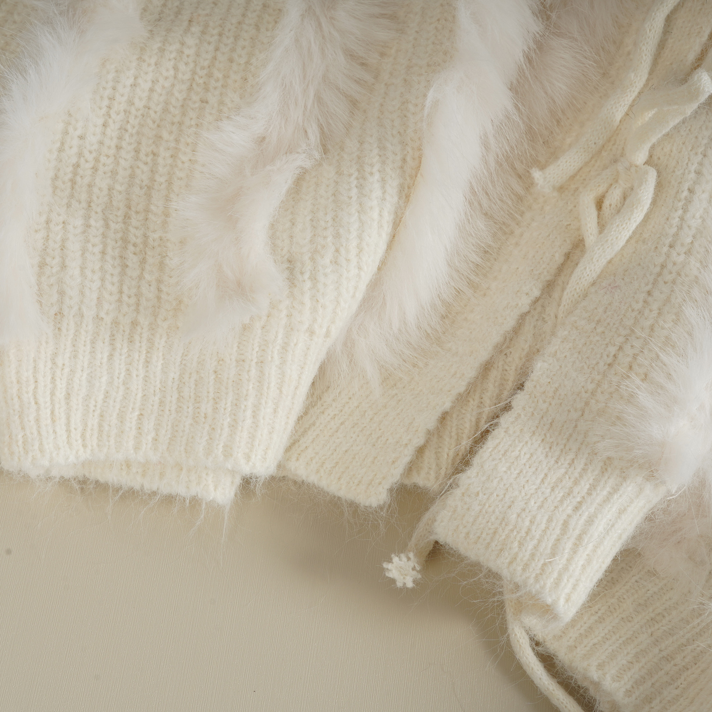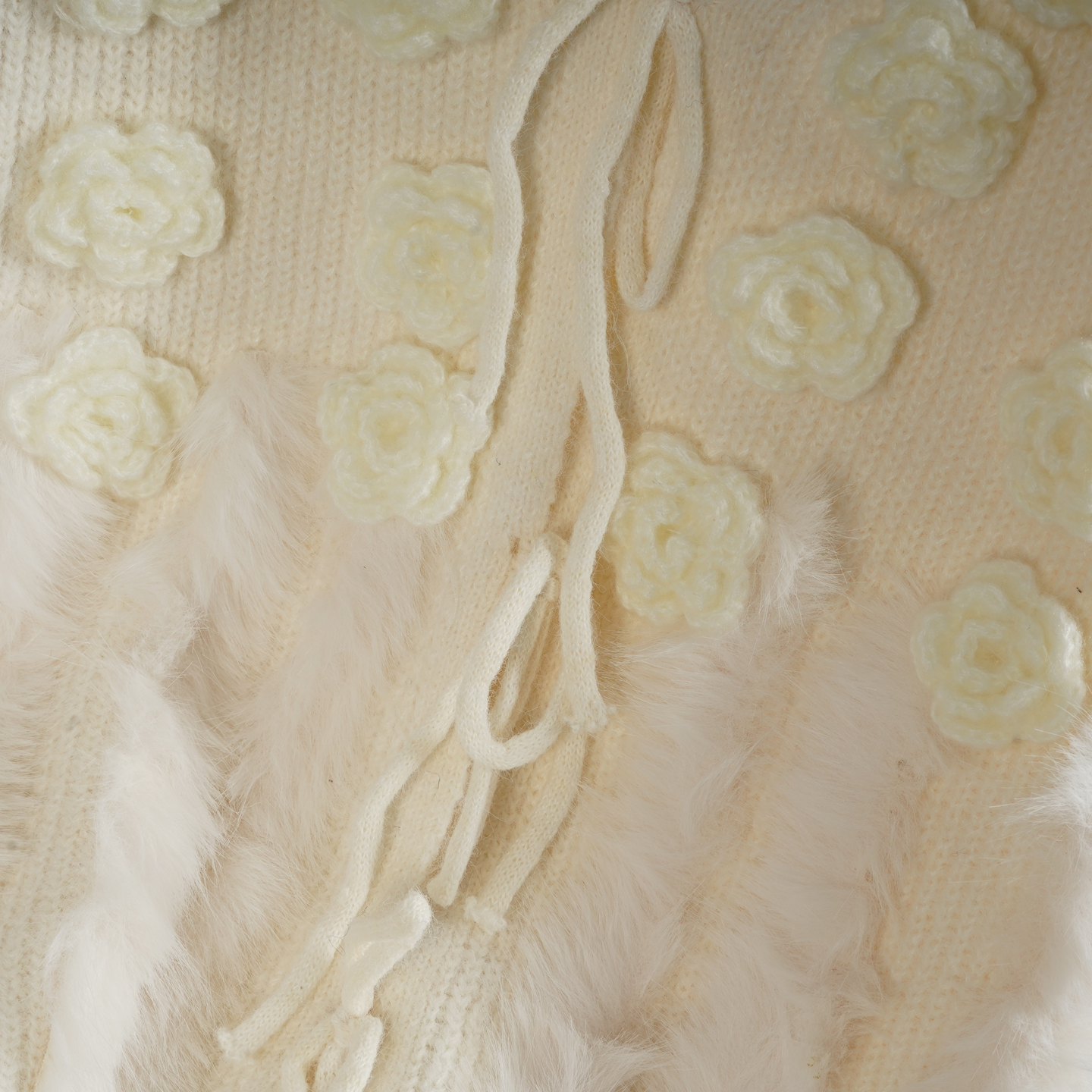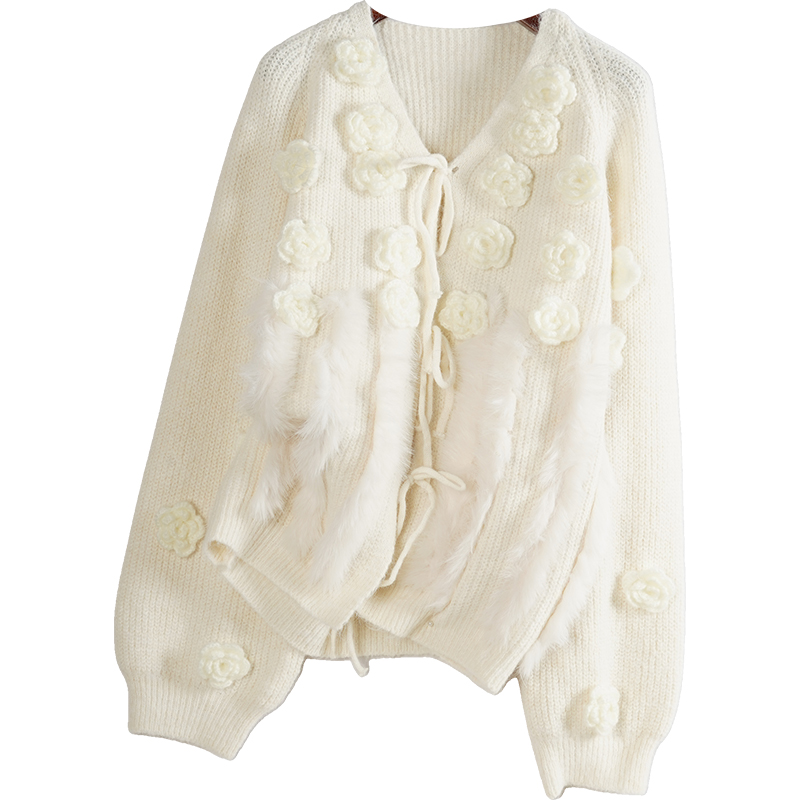 女童毛衣秋冬新款儿童立体花朵系带灯笼袖针织开衫初高中学生上衣