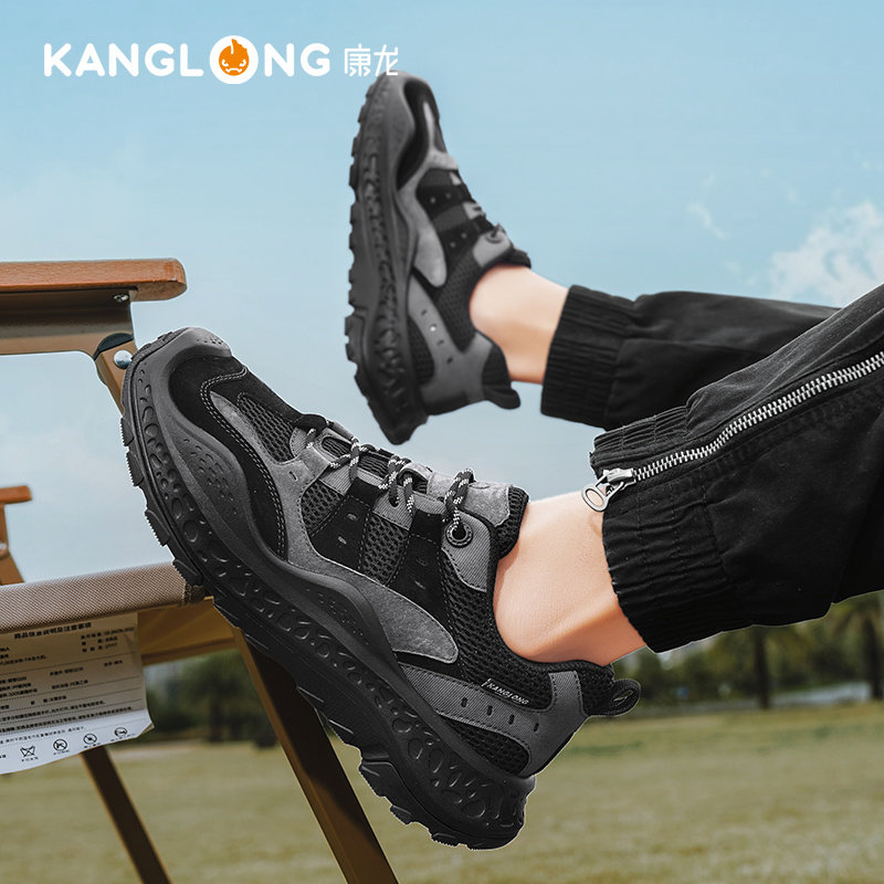 康龙男鞋2025新款夏季轻便软底户外徒步登山鞋透气网面运动休闲鞋