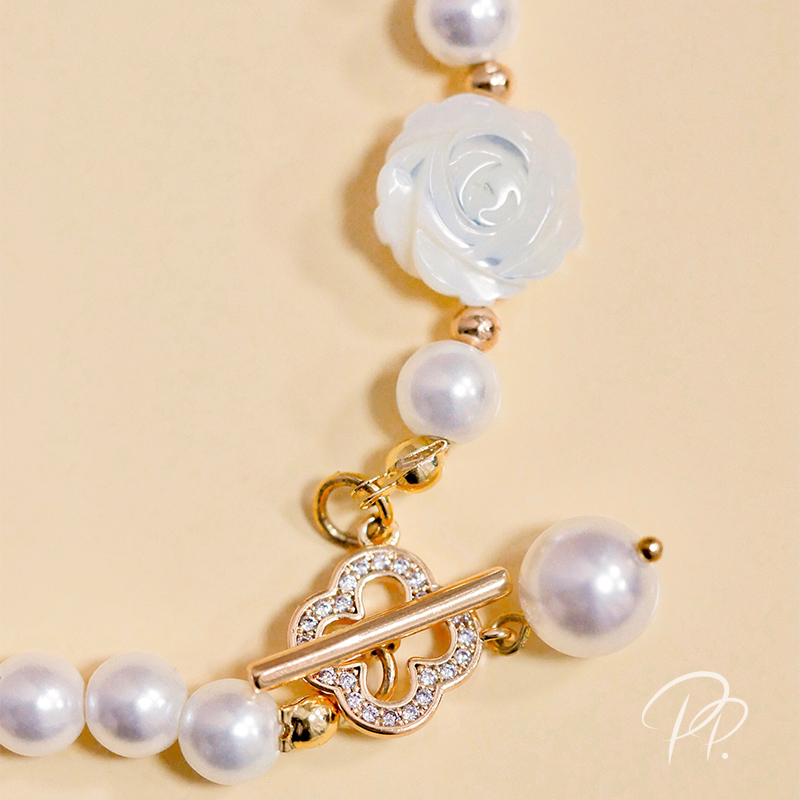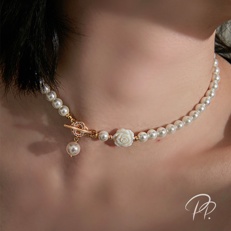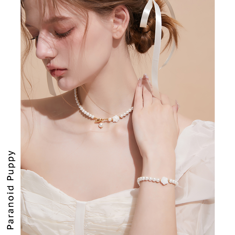 PP饰品原创法式玫瑰四叶草珍珠项链女小众设计配饰轻奢高级锁骨链