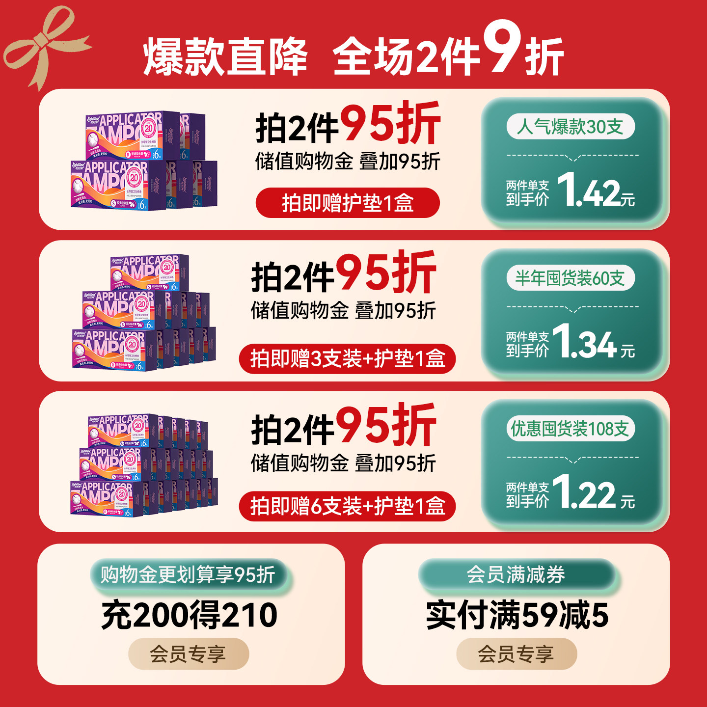 轻时间卫生棉条大流量30支导管棉条超薄卫生巾月经棉棒游泳姨妈巾