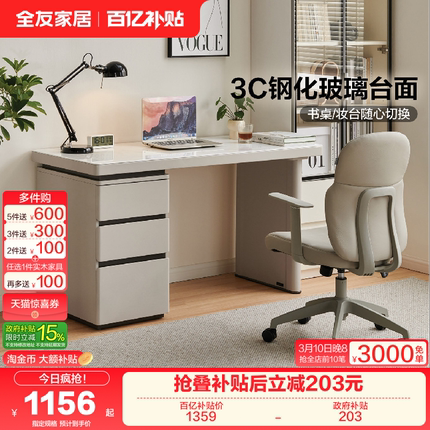 全友家居书房家用写字桌书桌旋转书椅家具卧室学习桌家用办公桌