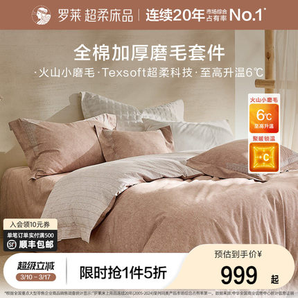 罗莱家纺秋冬新品全棉贡缎磨毛床单学生宿舍加厚保暖四件套