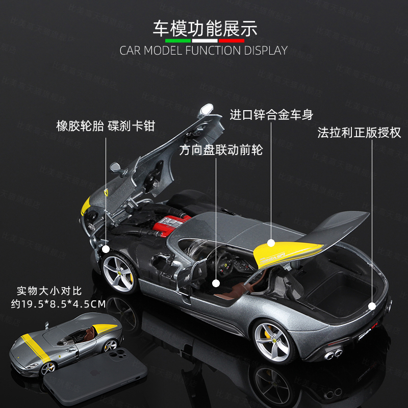 比美高车模1:24法拉利模型Monza敞篷合金汽车仿真收藏玩具礼物男