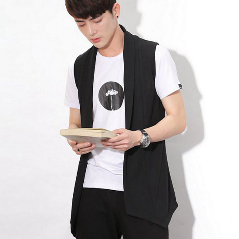 中长款马甲男潮流纯色马夹背心春秋修身坎肩韩版无袖针织开衫外套