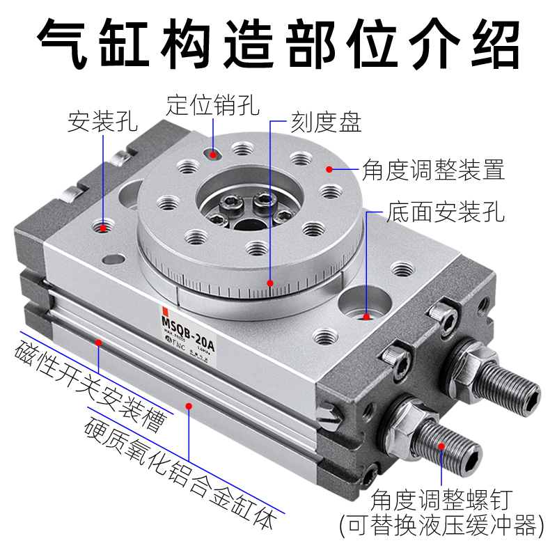 SMC90度180度气动HRQ摆动旋转气缸MSQB-3A7A10A20A30A50A70A100A