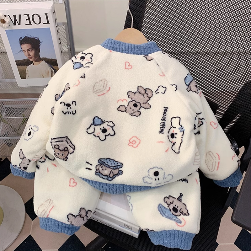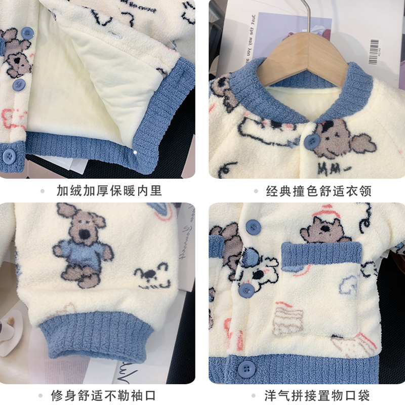 儿童睡衣套装冬季珊瑚绒加绒加厚款男女童法兰绒宝宝满印花家居服