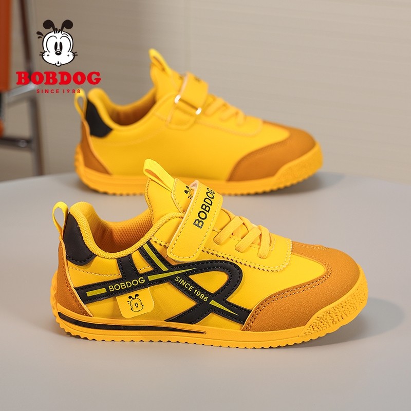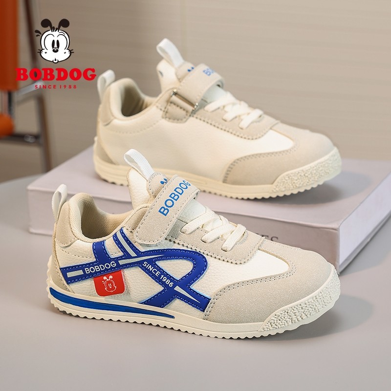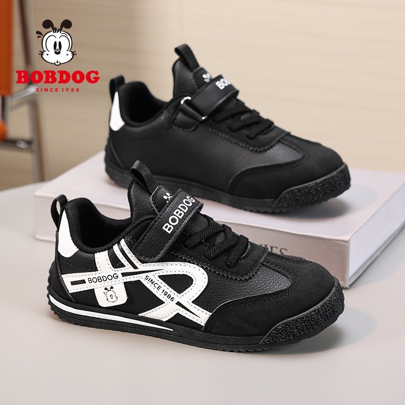 巴布豆童鞋男童鞋子2025春秋新款皮面防水儿童运动鞋女孩跑步鞋潮