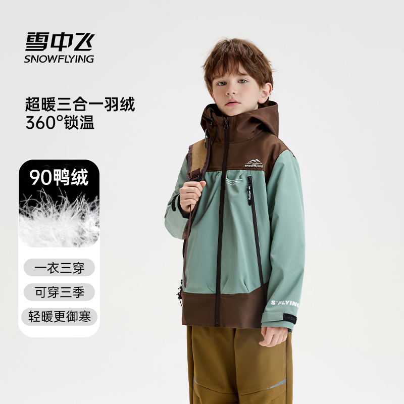 雪中飞儿童装三合一外套男童女童春秋季2025新款冲锋羽绒早秋衣服