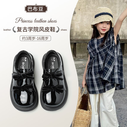 巴布豆真皮女童公主鞋2026新款秋季小皮鞋软底学生鞋子乐福鞋单鞋