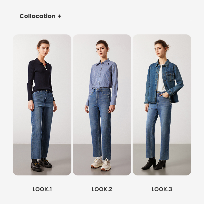 Navigare意大利小帆船女士牛仔裤秋季弹力高腰九分裤修身烟管裤子